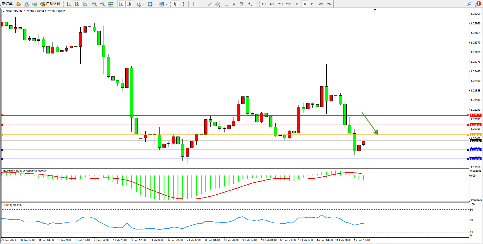 英镑美元GBPUSD ——4小时K线图显示:
