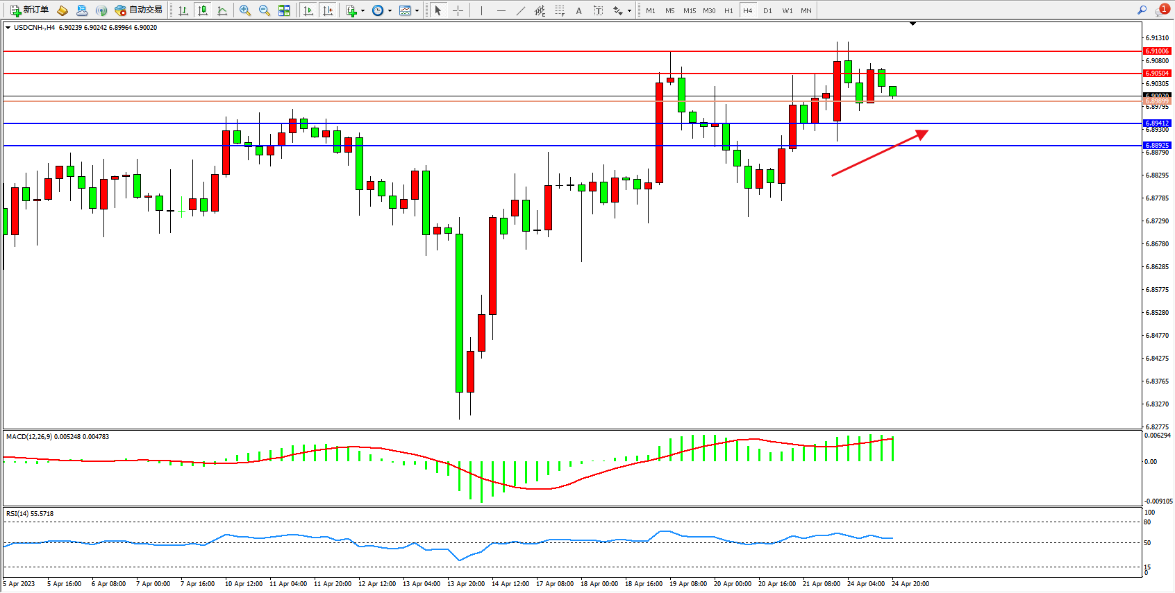 阻力位:6.90504 6.91006