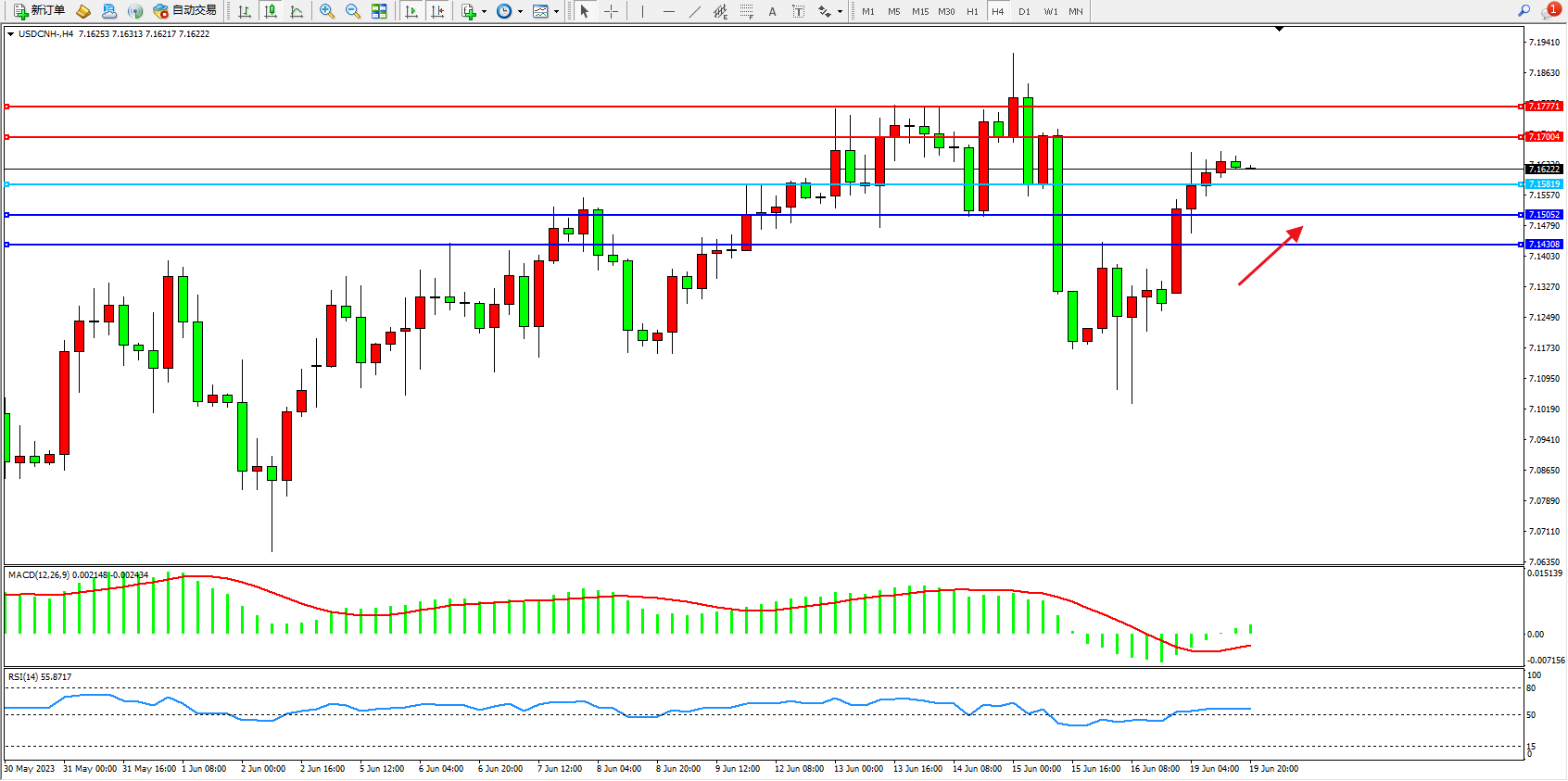 交易策略:7.15819上方看涨,目标7.17004 7.17771